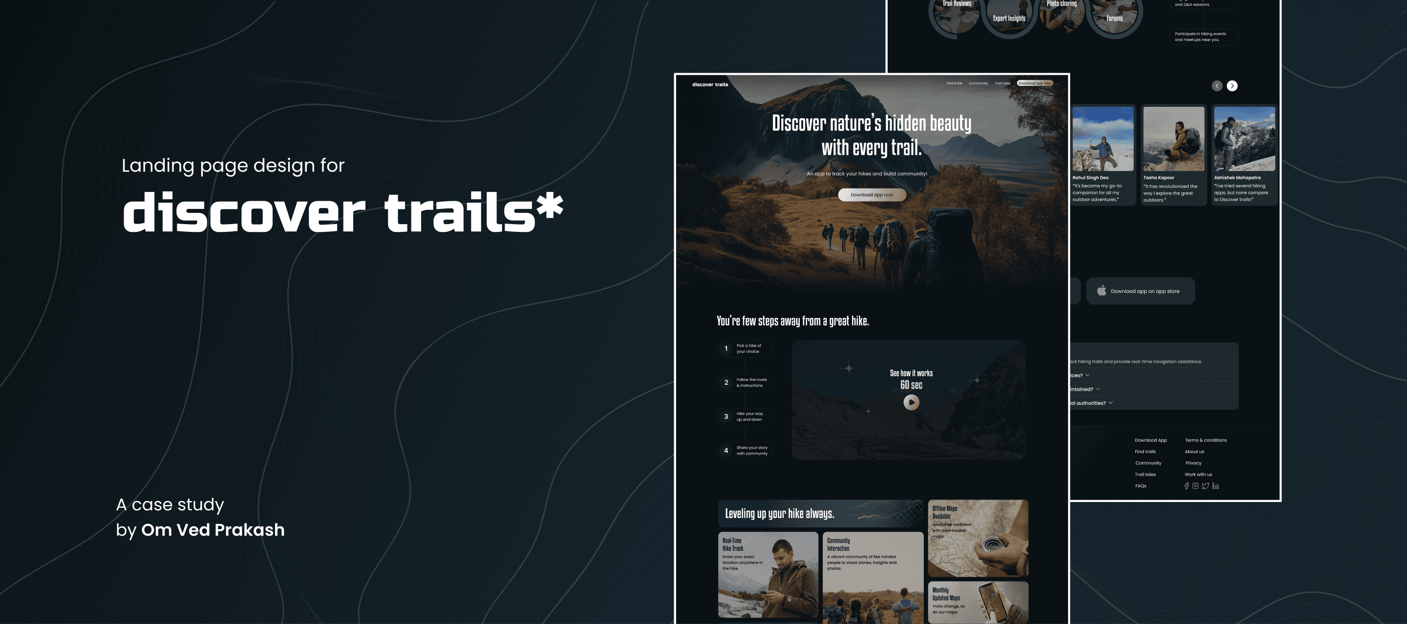 DiscoverTrails is a real-time hiking companion built to keep hikers on the right path, even when the signal drops. It combines live trail tracking with offline downloadable maps, safety guidance, and monthly map updates—plus a community layer where hikers can share routes, stories, and plan group hikes.