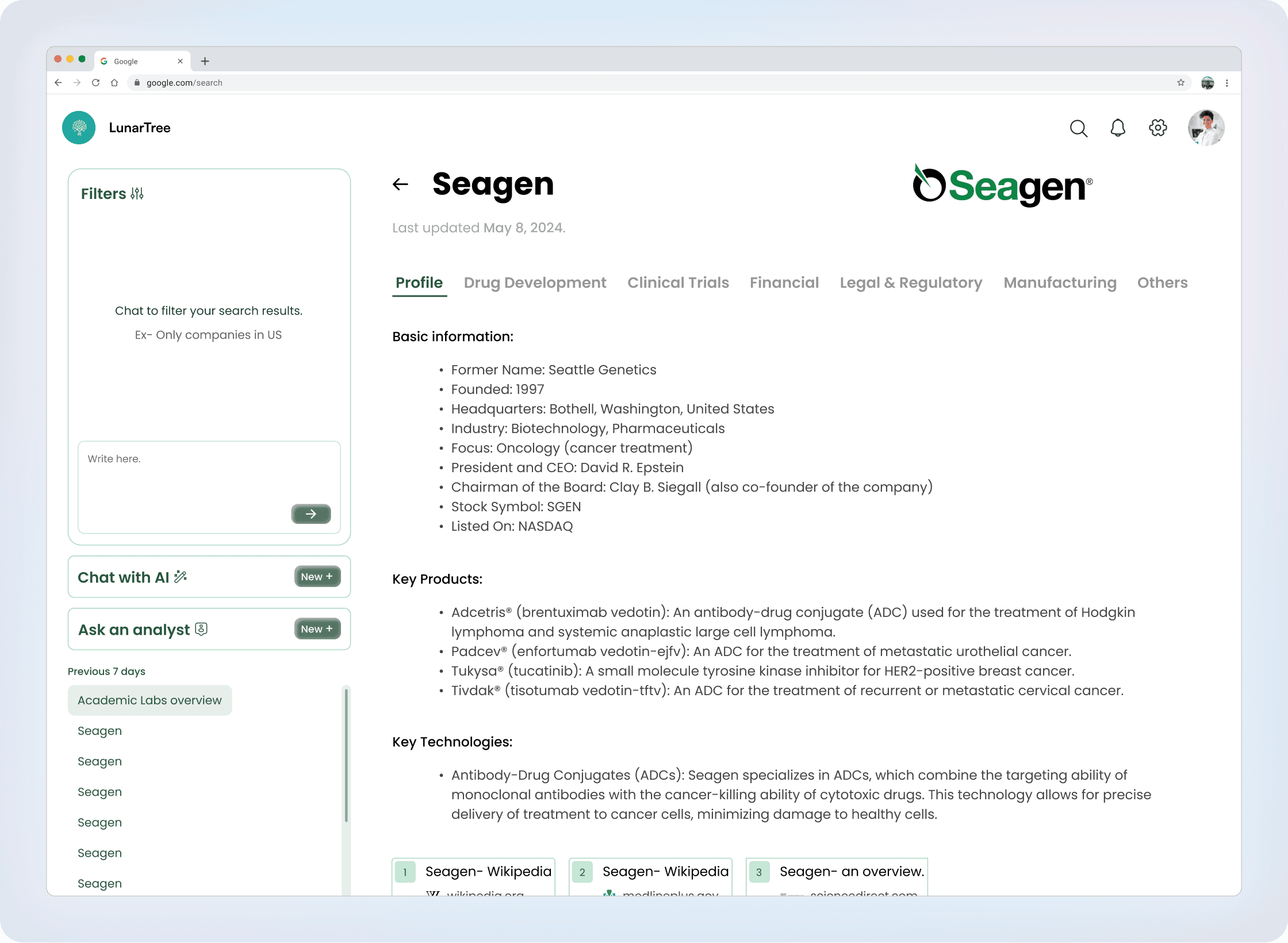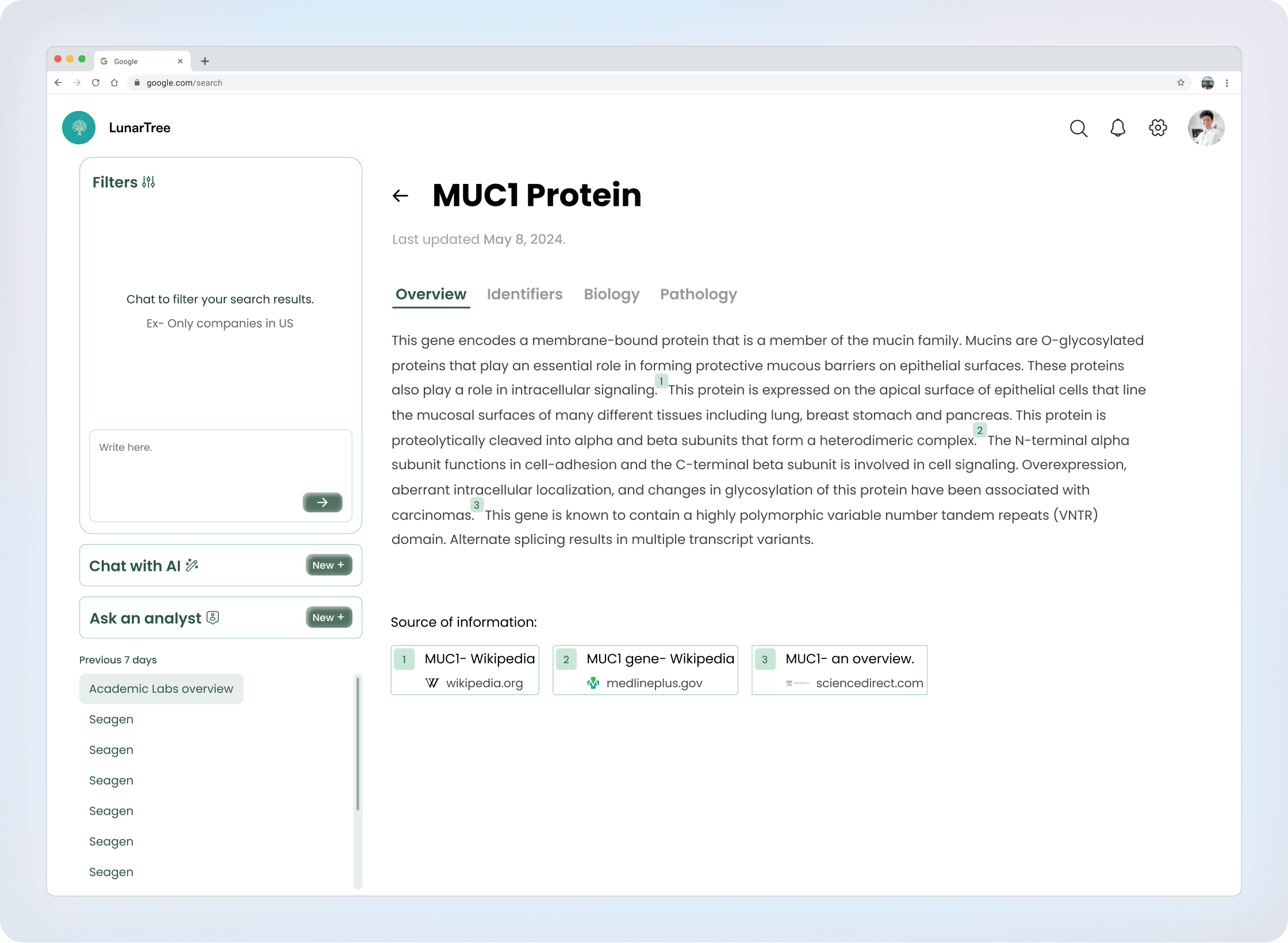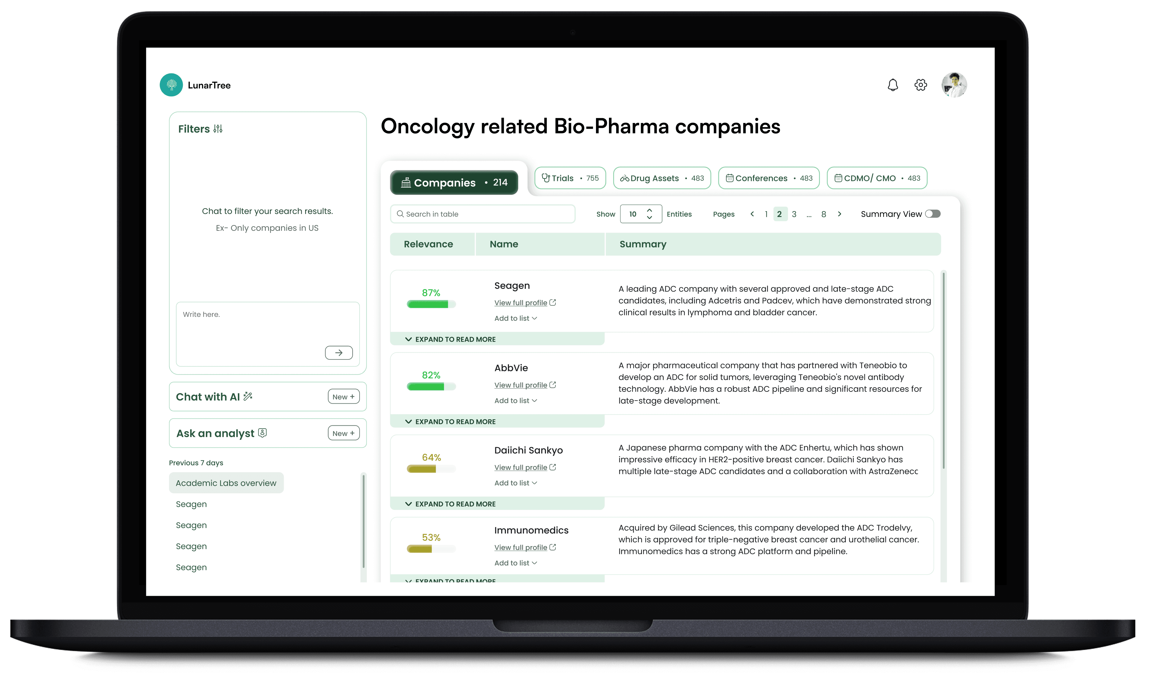 LunarTree is an AI-powered biopharma intelligence platform that turns scattered research data into personalized insights for life sciences teams.