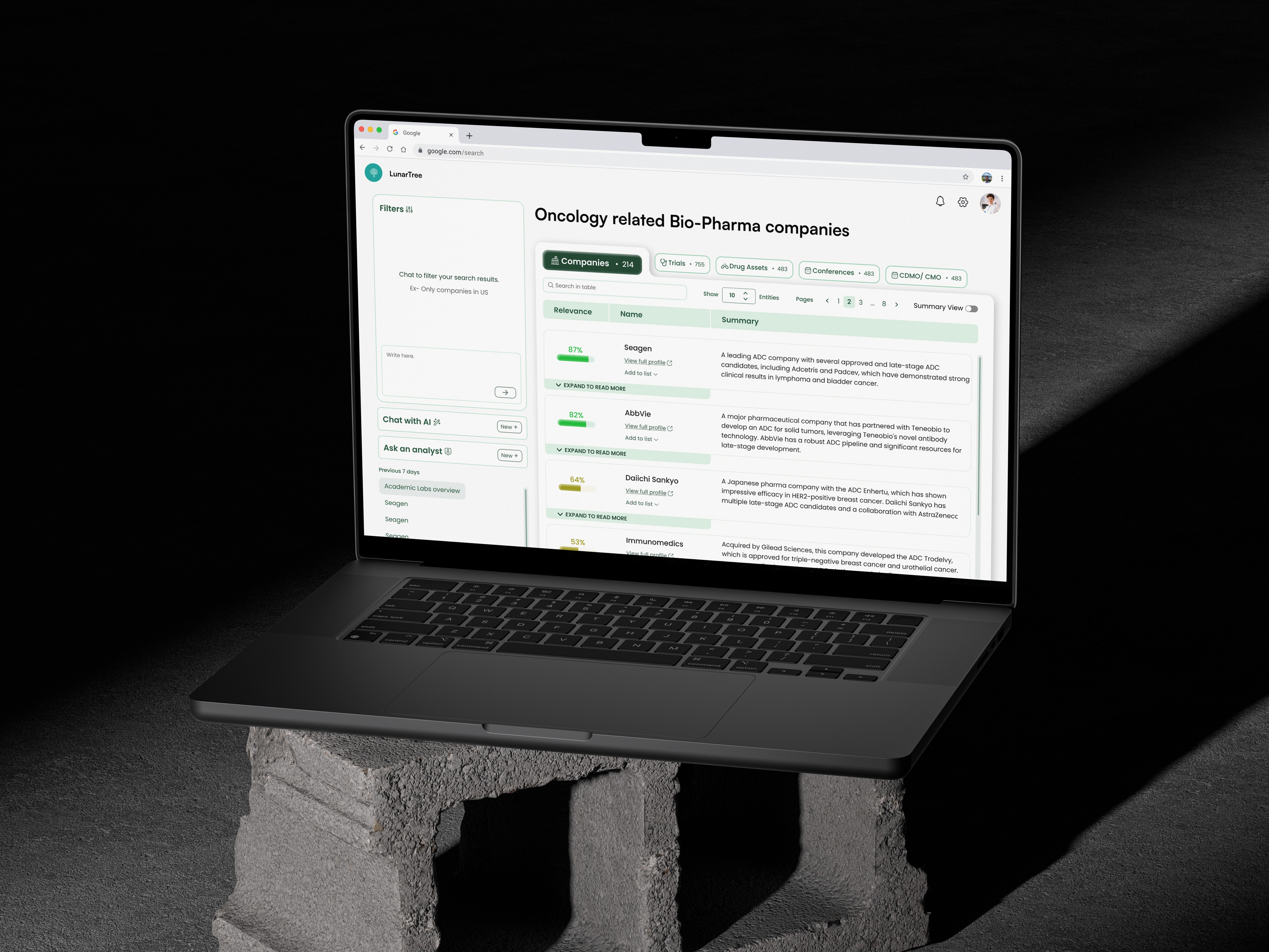 Designed for precision, speed, and clarity, LunarTree reduces research complexity across therapeutic areas and roles.