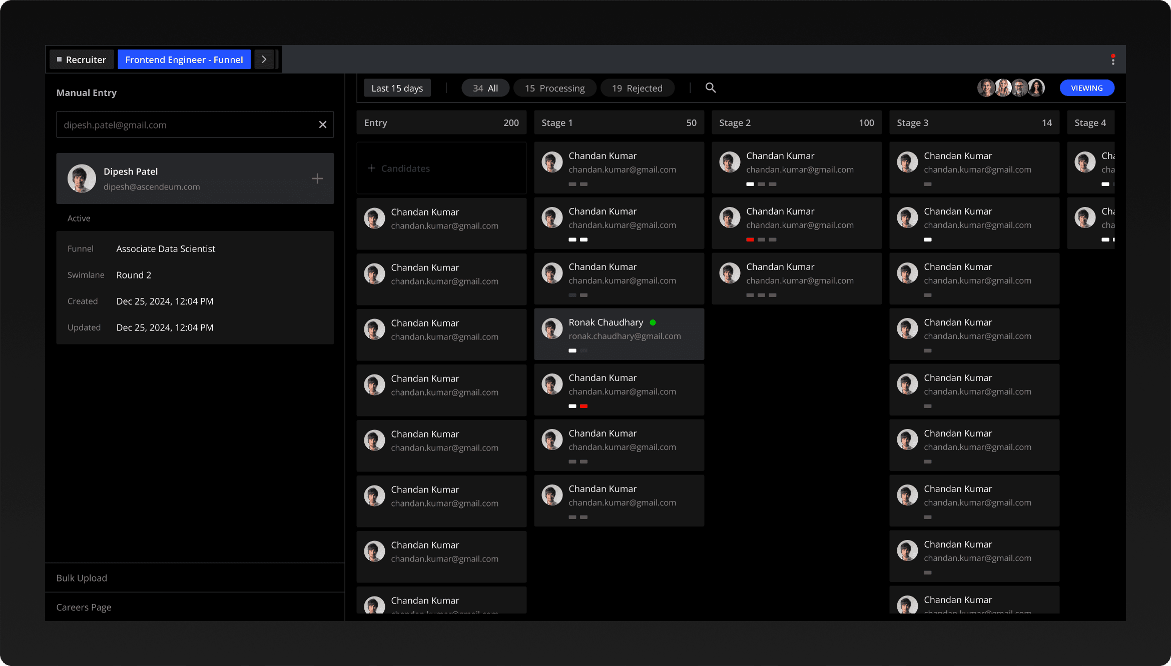 This interface allows recruiters to seamlessly upload and manage candidate profiles, keeping data organized and ready for review.